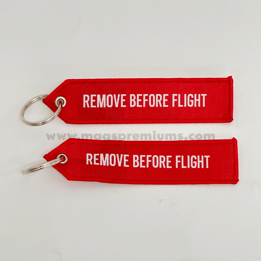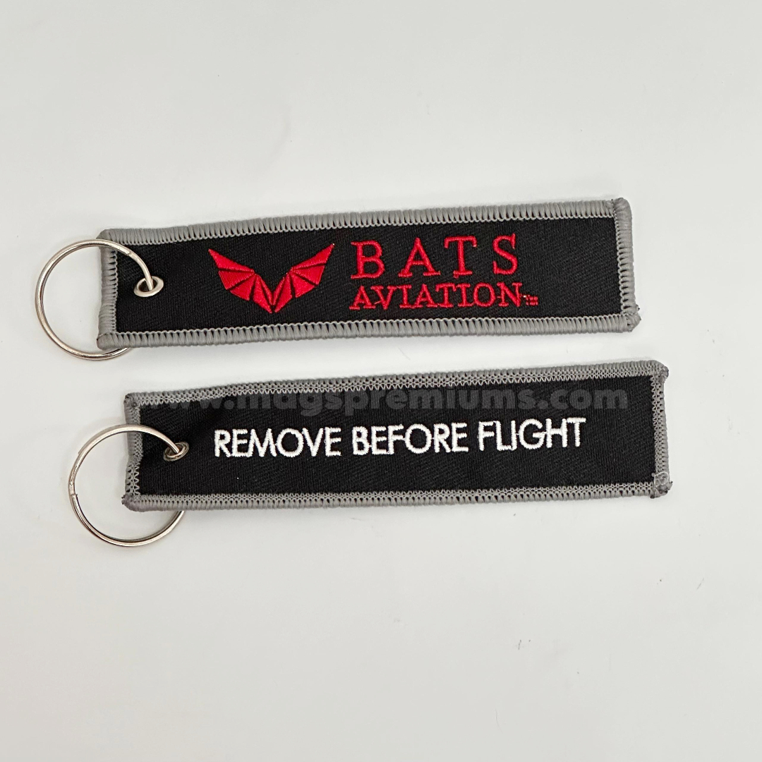 Design your own custom embroidered keychain with custom size, colors and add-on accessories. Remove before flight keychain with minimum order quantity of 100 pieces. Mass production lead time is within 2 weeks.