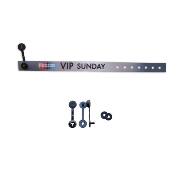 Satin Wristbands are another type of fabric wristbands. Printed with 1 color or full-color printing is available. Size and design can be custom made based on your request. Attached with a one-time use plastic clip or plastic lock as non-transfer wristbands. For multiple times uses, you may consider an adjustable lock.